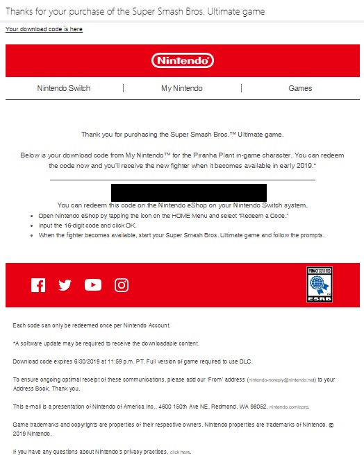 I believe there is no download code. If you already registered your gold points to My Nintendo (or bought it digitally, which does it automatically), then you should automatically get Piranha Plant when it releases next month. Or maybe they’ll give us a code when it releases.